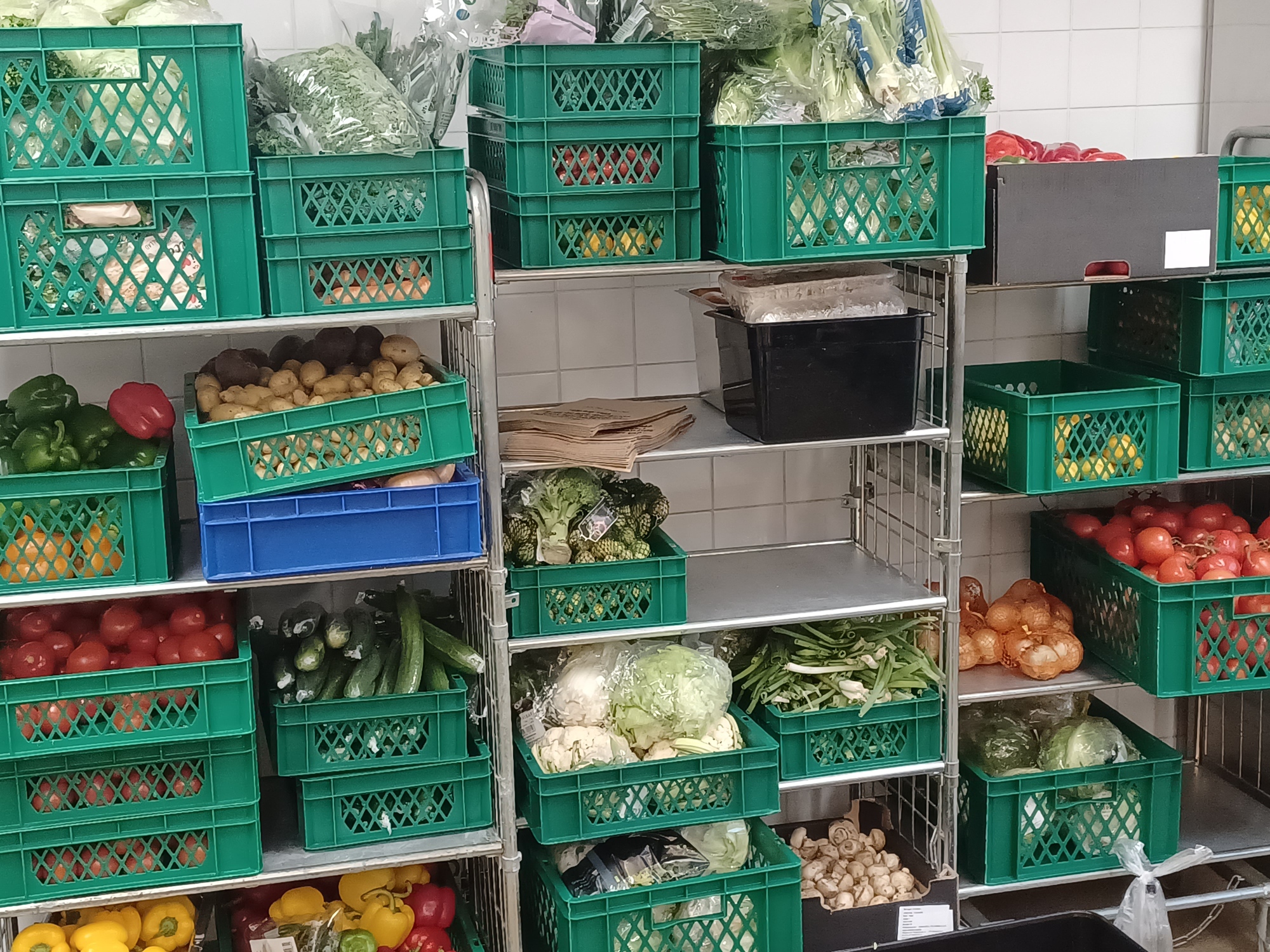 Vid utlämningen går man in en i taget och tar en färdigpackad matkasse och en färdigpackad brödkasse, detta gör utlämningen smidigare, bidrar till mindre stress för oss alla och betyder dessutom kortare kötid.